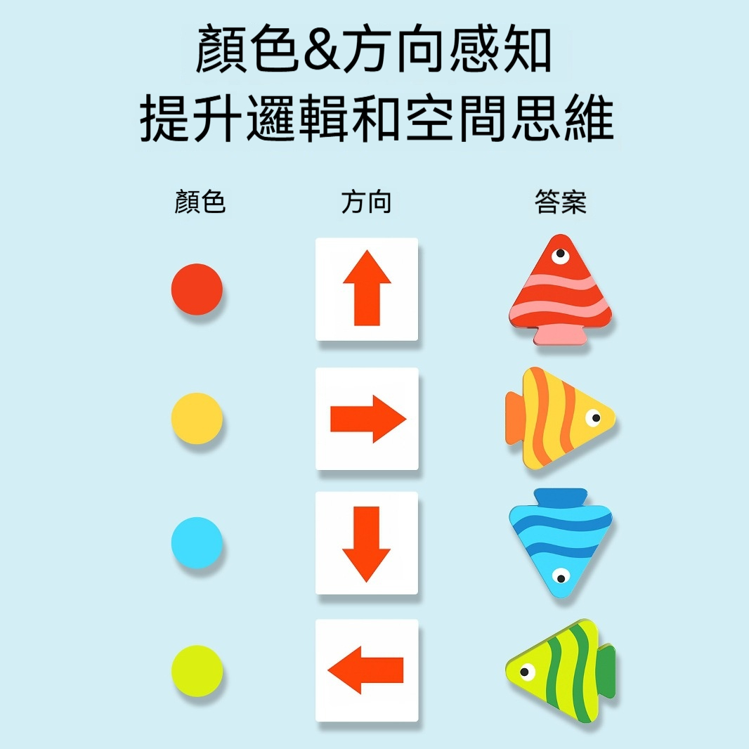 【德國工藝智慧啟蒙】小魚探險家方向積木!✅五色認知+方向辨別+空間思維開發✅強力磁吸設計✅圓角安全木材✅3歲以上啟蒙玩具