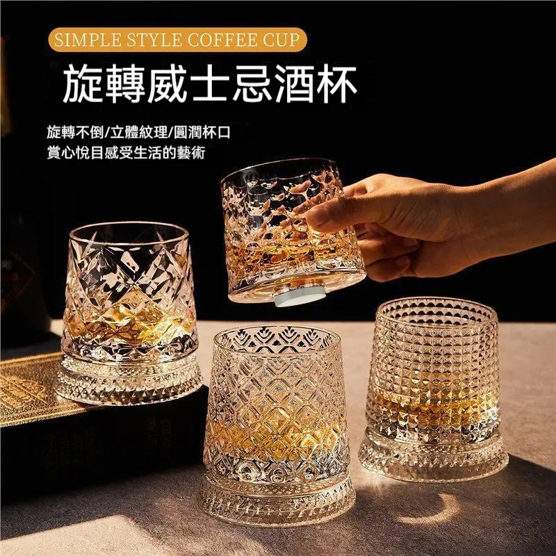 【旋轉立體浮雕杯】立體浮雕杯身✅精密不鏽鋼軸承✅60°平穩旋轉✅水晶玻璃,光影在指尖流轉閃耀✨