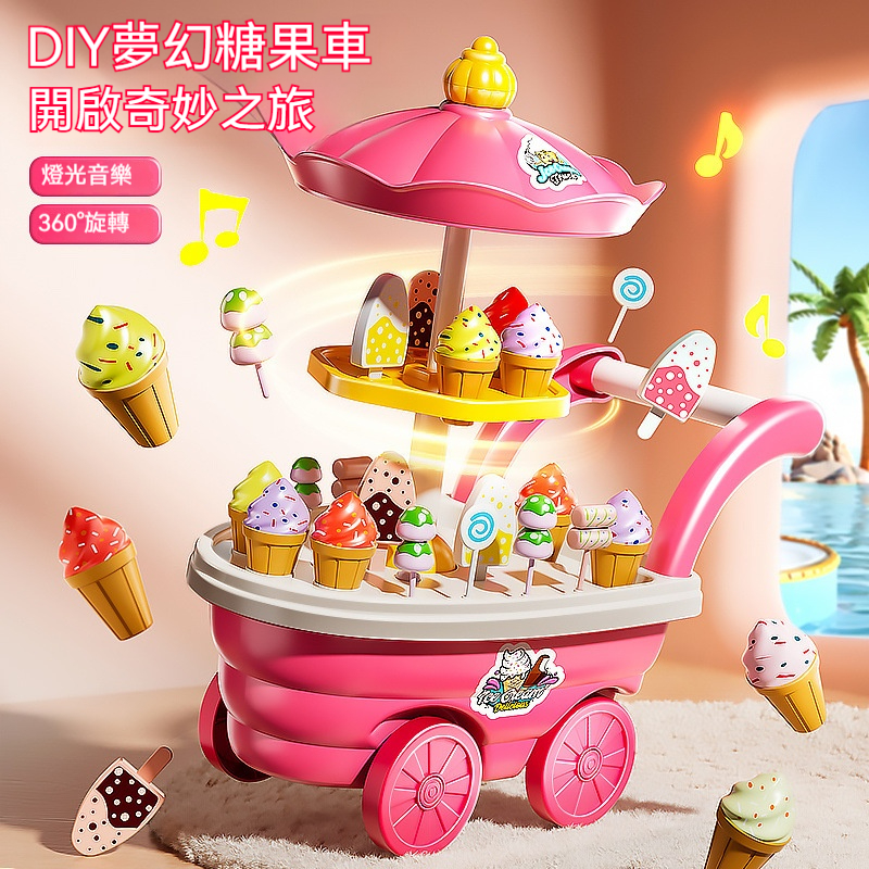 【音樂燈光冰淇淋車】365°旋轉檯、DIY貼紙、80+種糖果配件✨讓孩子親手組裝夢想攤車,扮演最甜美的冰淇淋小老闆!✨