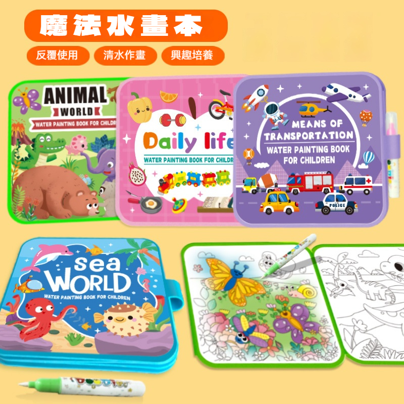 【兒童神奇清水畫本】✨水為墨・筆為筆・反覆使用|摺疊收納|安全不髒手|早教啟蒙塗鴉本✨