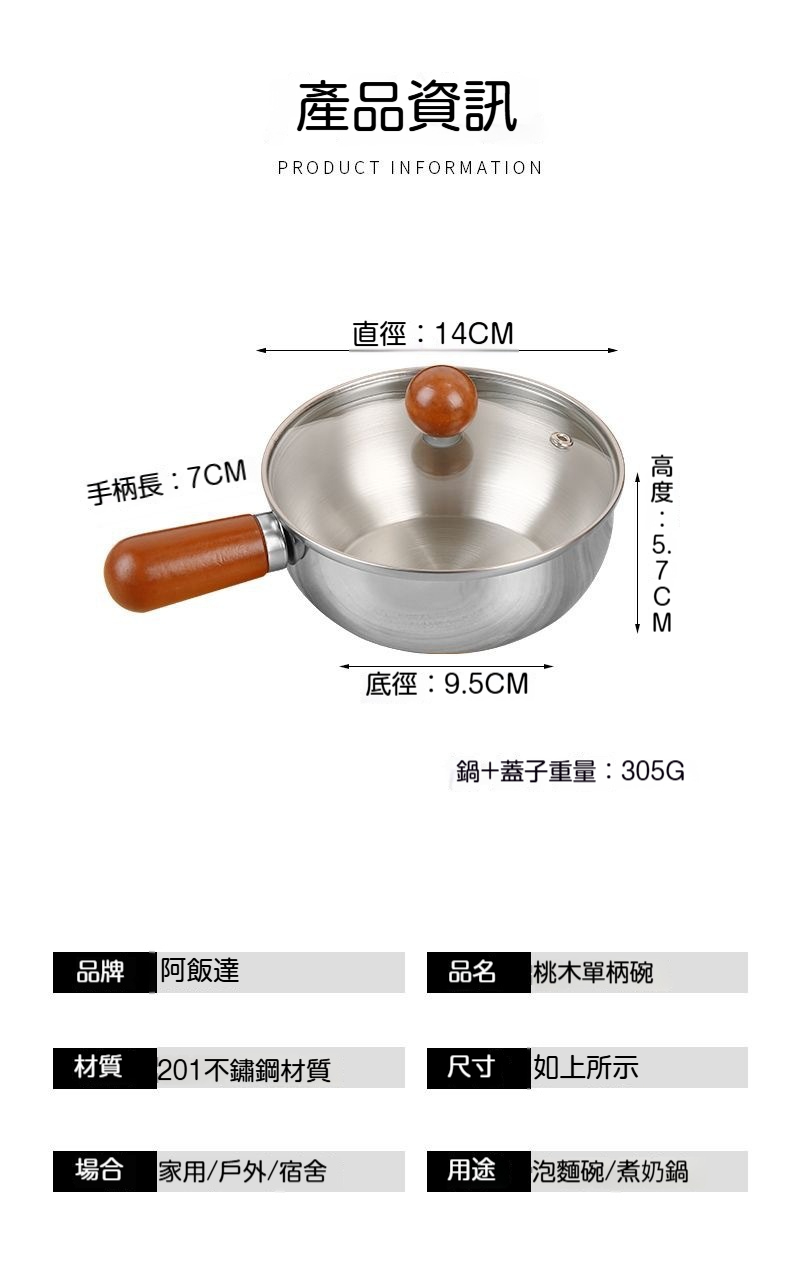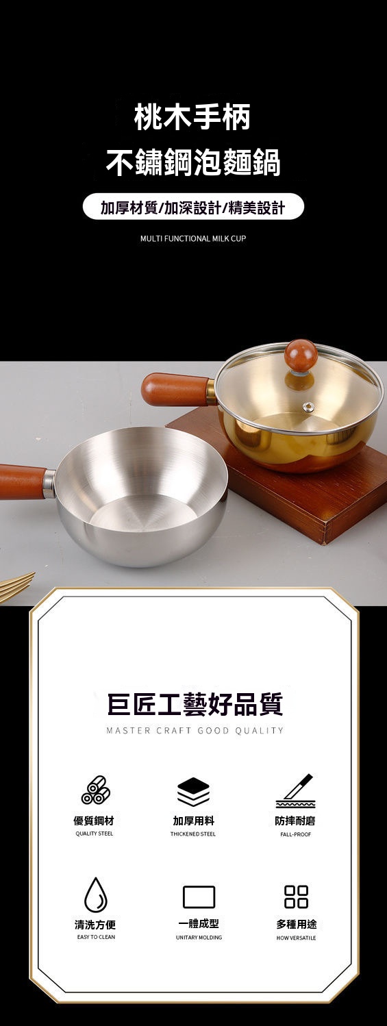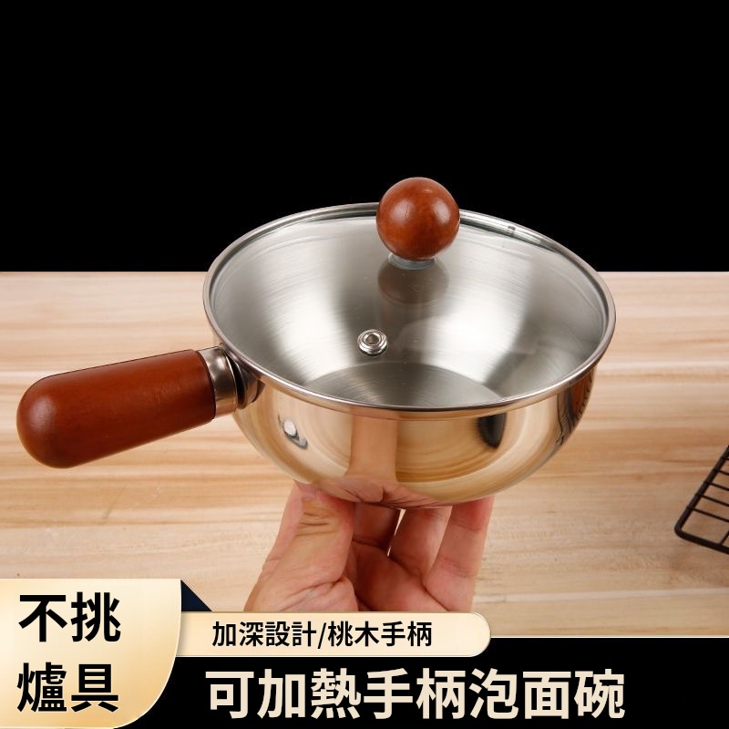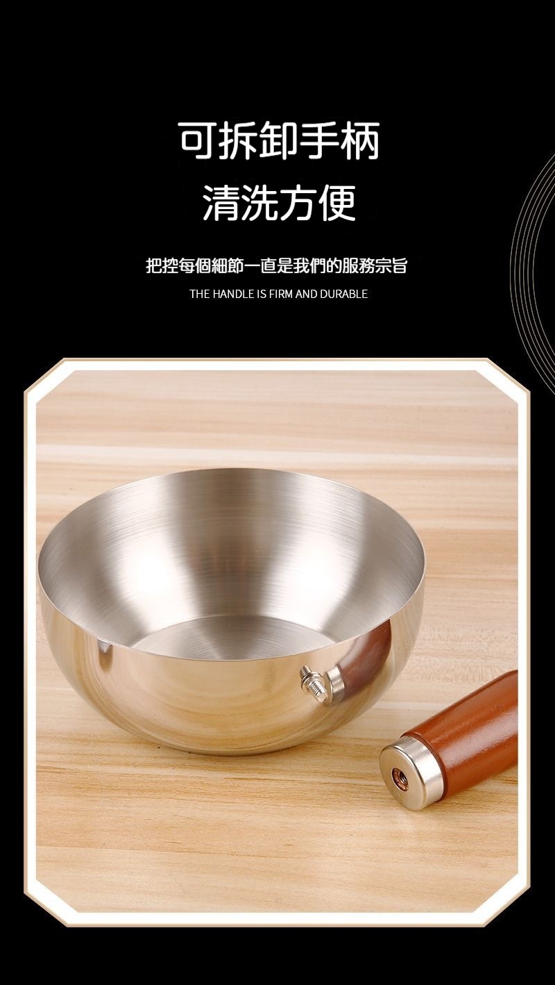 【加厚不鏽鋼多功能料理碗】防燙桃木柄・可拆手柄・一鍋多用|泡麵/醬料/備菜攏真合用✨(加深設計)