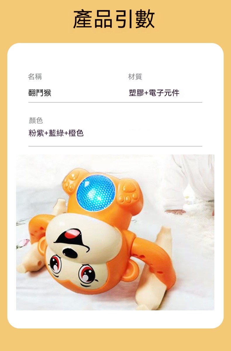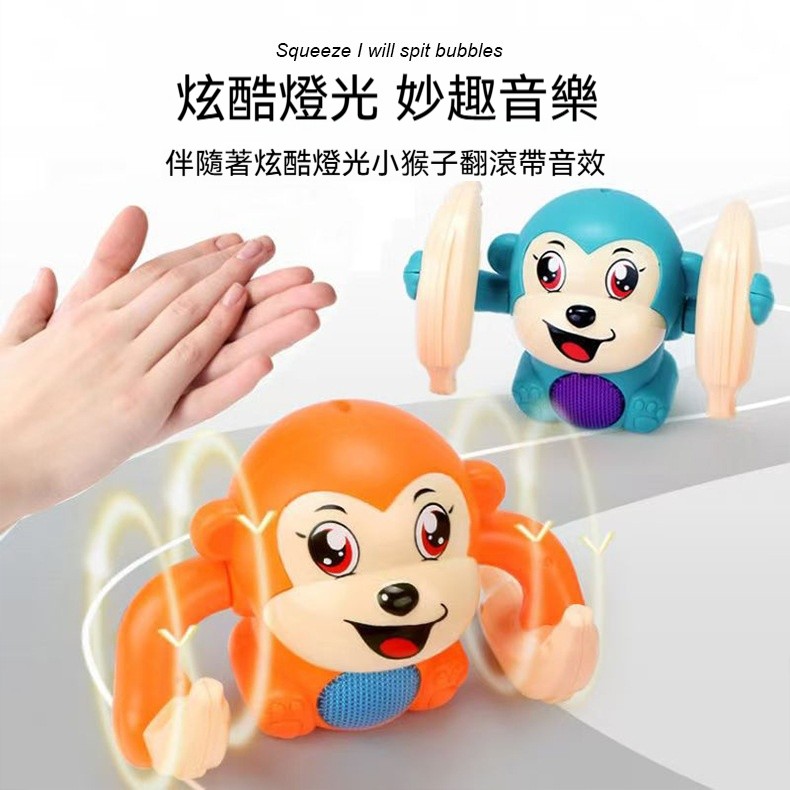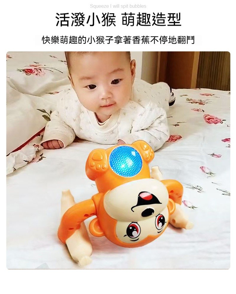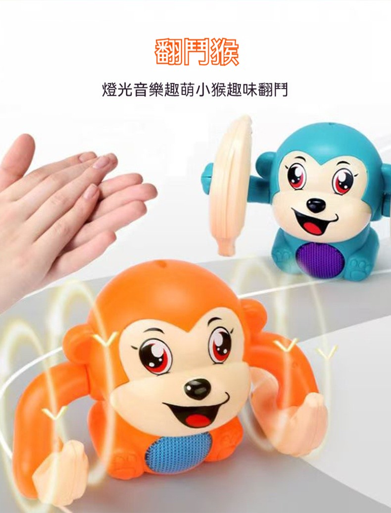 【聲光翻斗猴】一拍手就翻筋斗、唱歌發光✅追視訓練✅爬行引導✅聽覺刺激✅因果認知・啟蒙寶寶大動作發展