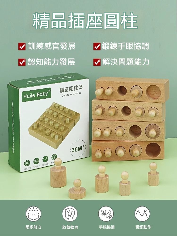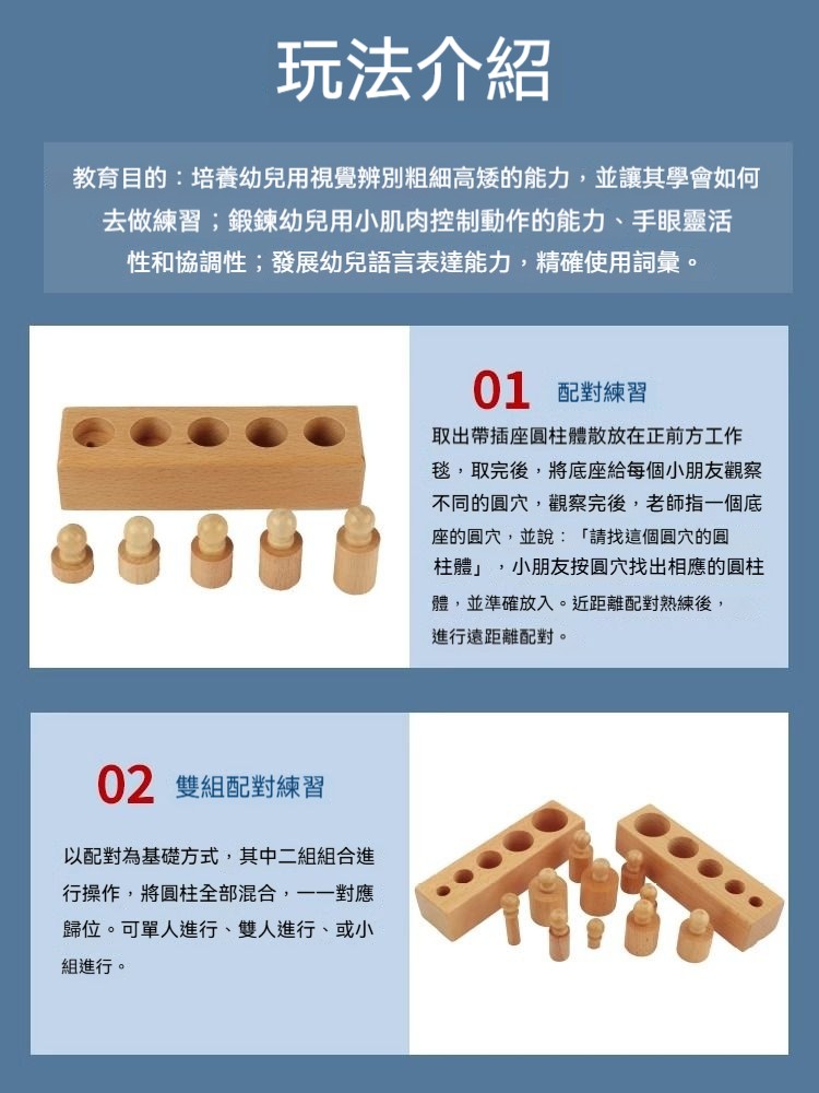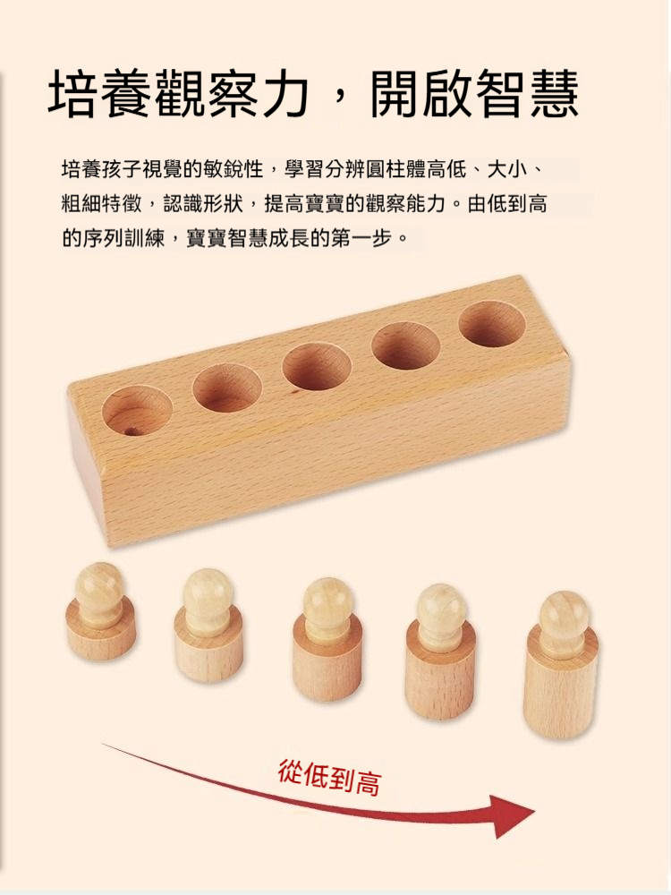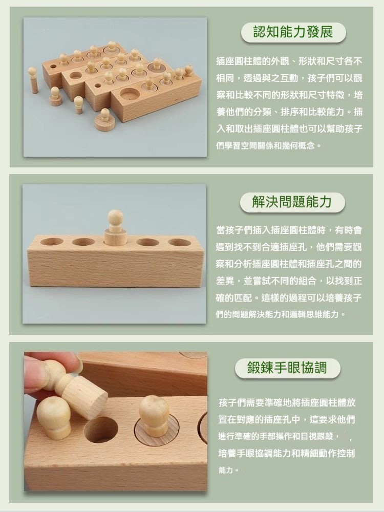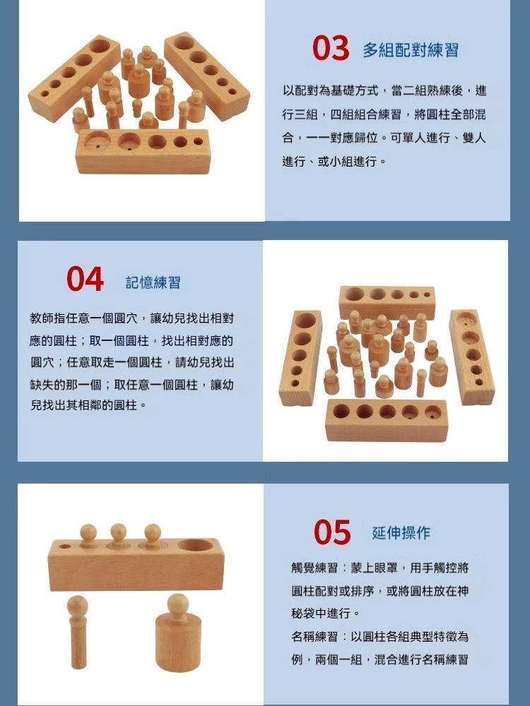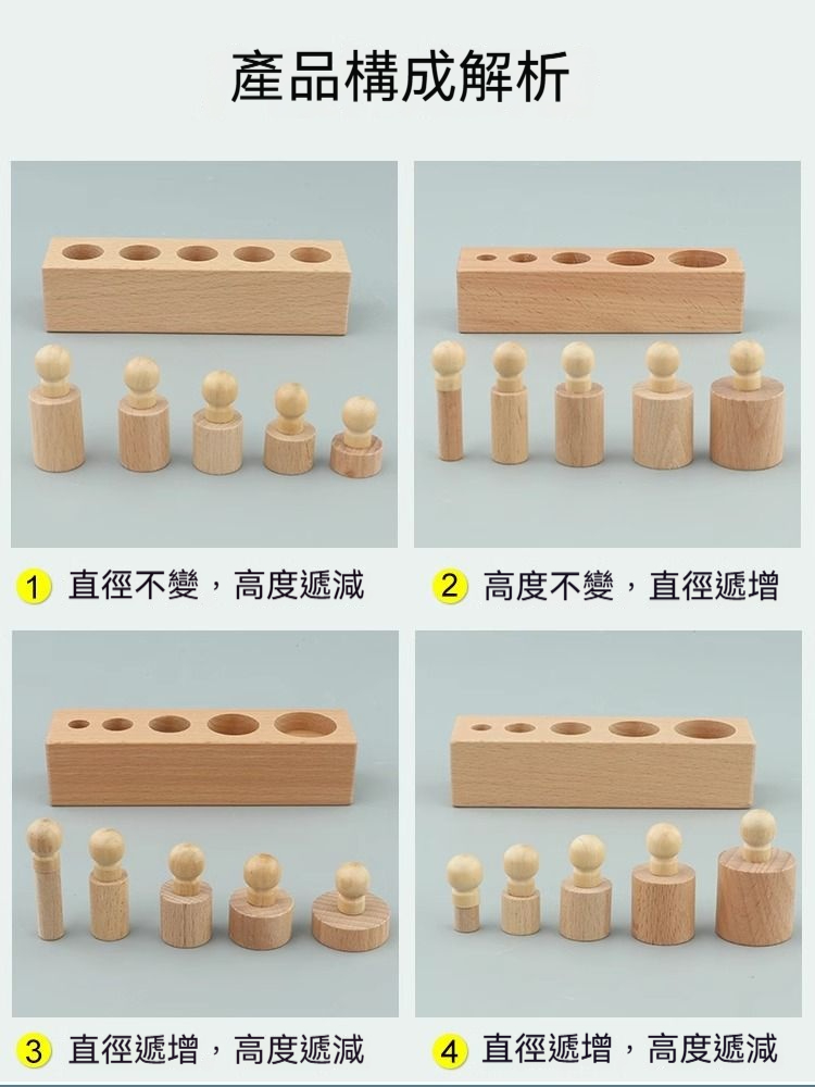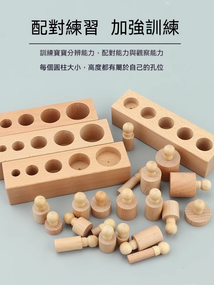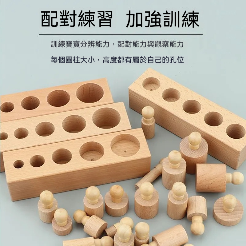 ✨【正版蒙氏教具】插座圓柱體四組套裝! 培養視覺辨別+邏輯思維+精細動作|歐盟認證安全材質|1.5-4歲感官教育必備!