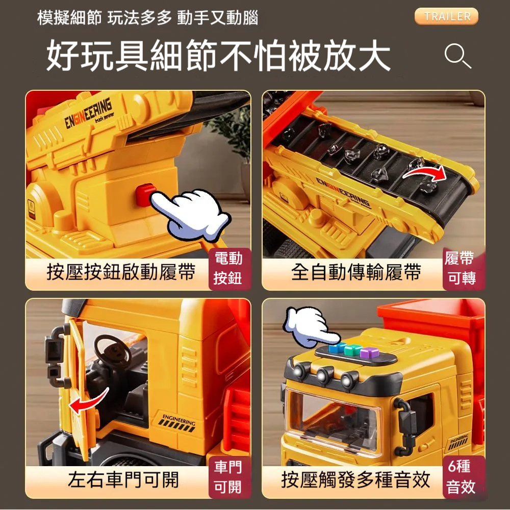【電動履帶工程車】電動傳送帶、車門可開、6種音效✨搭配可載送砂石功能,從運載到傾倒,完整還原工地實景!✨