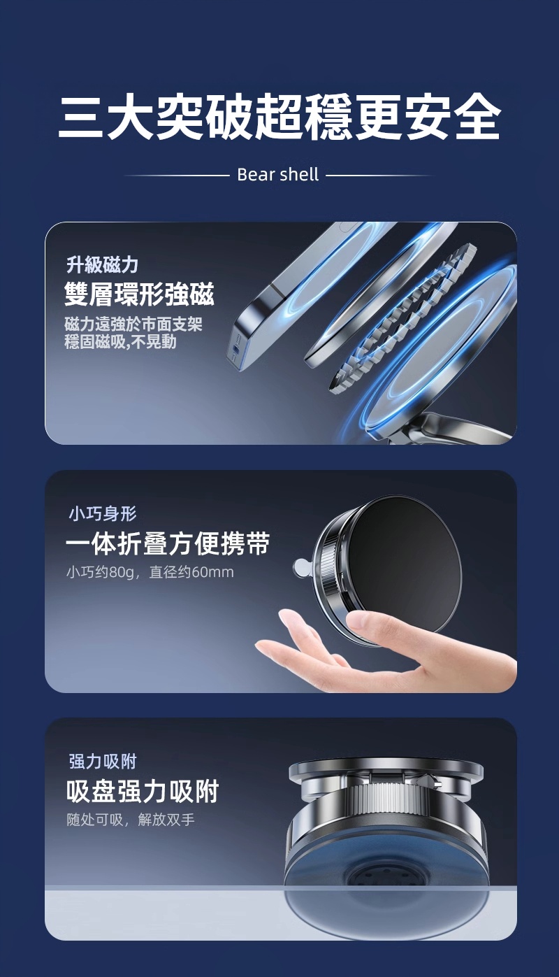 【旋轉折疊真空磁吸支架】納米吸附・360度自由旋轉|超強磁力・一體折疊設計|車用/居家多場景通用✨