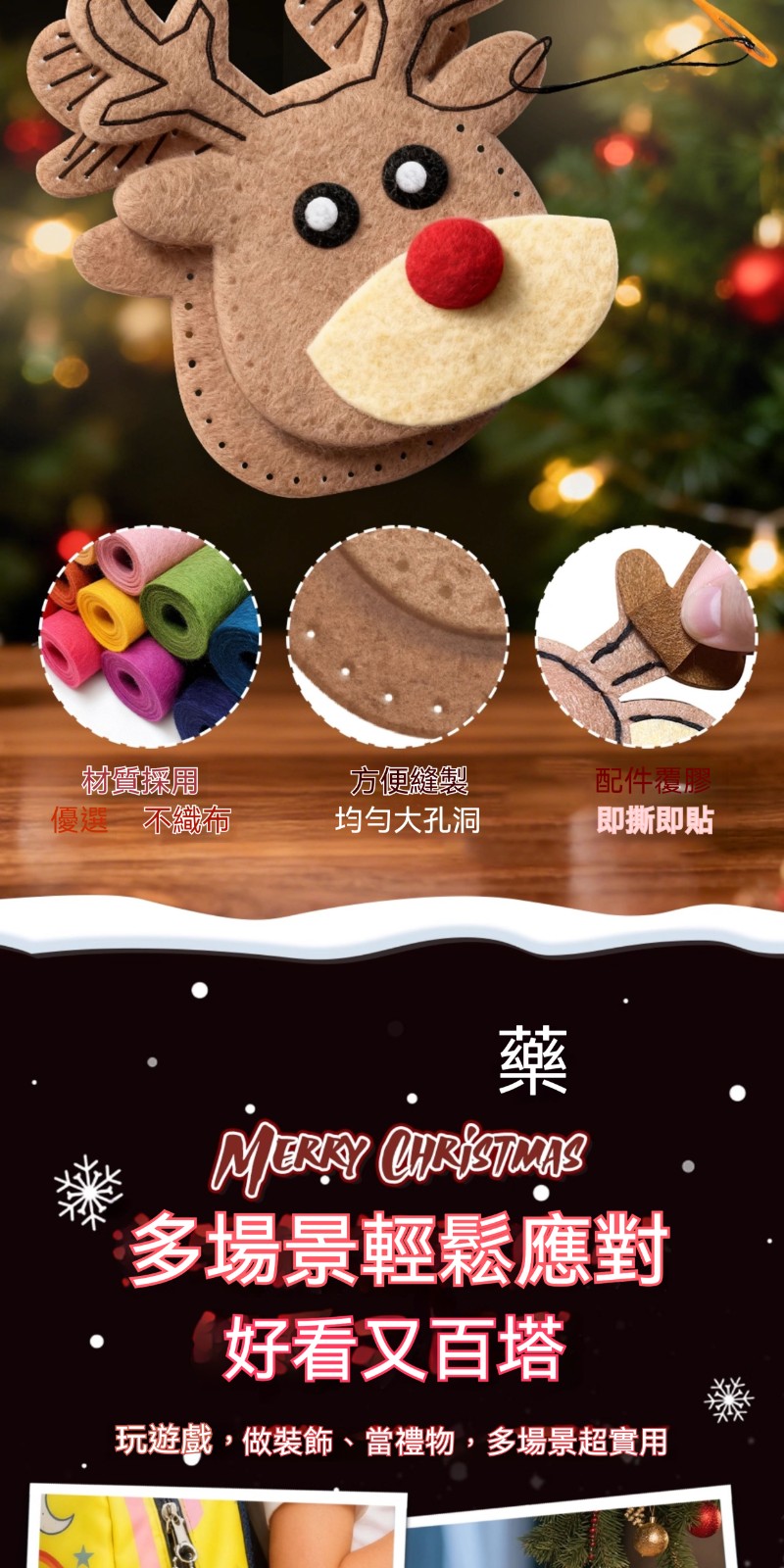 【聖誕縫縫樂DIY材料包】不織布安全手作・親子共縫時光|多款萌趣造型・平安夜暖心禮物✨