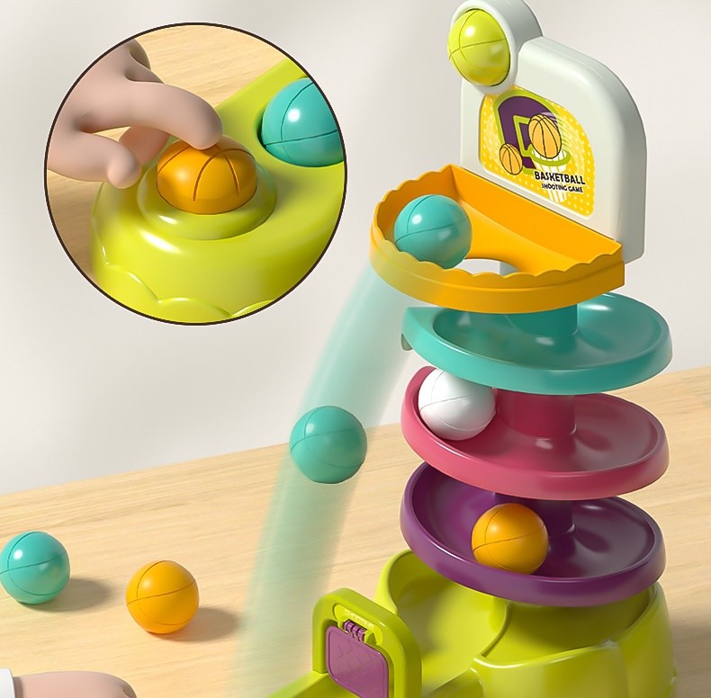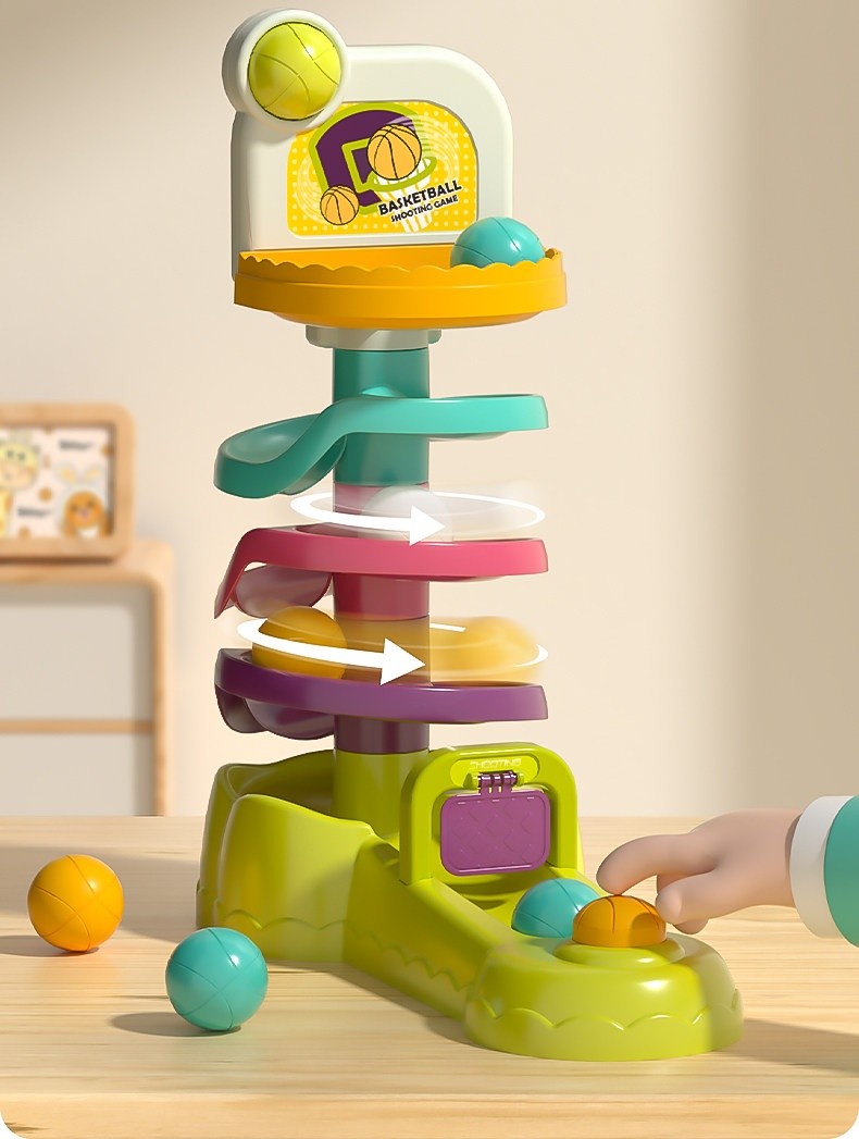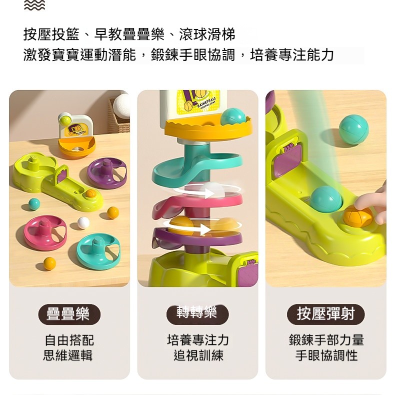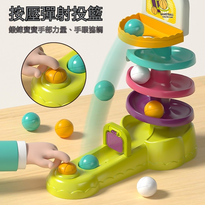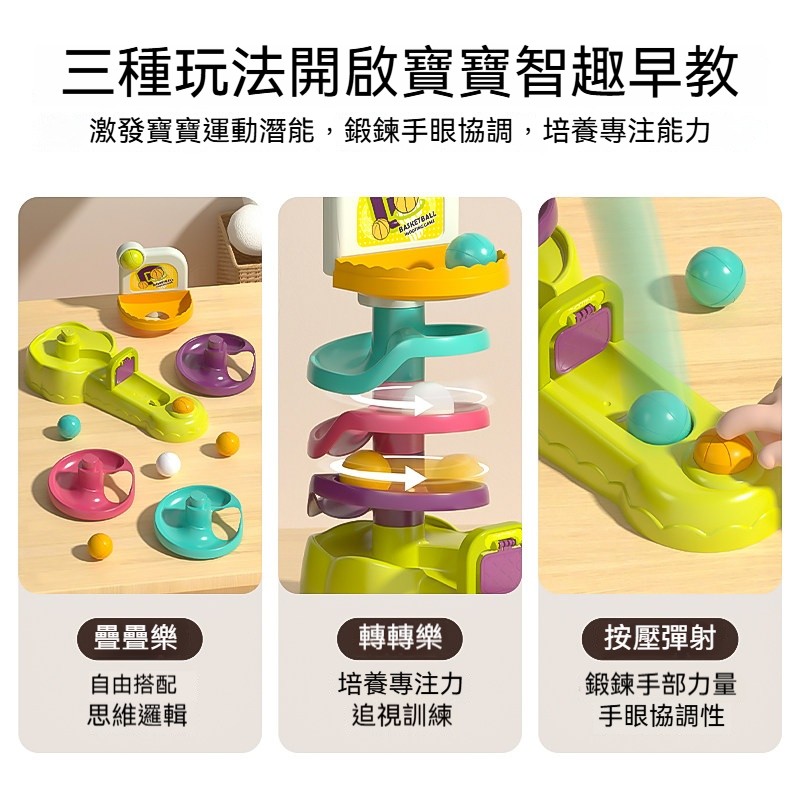 軌道轉轉樂早教玩具|一鍵彈射投籃+三種玩法|培養專注力與手眼協調,寶寶越玩越聰明!