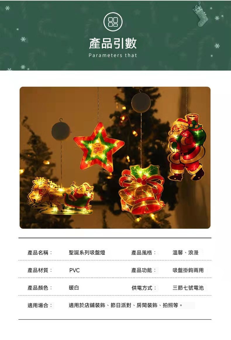 ✨【LED聖誕吸盤燈】聖誕老人×雪人造型|吸盤掛鉤雙設計|節日氛圍輕鬆營造|店鋪裝飾首選