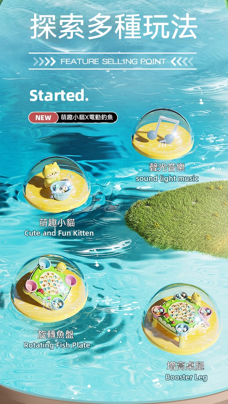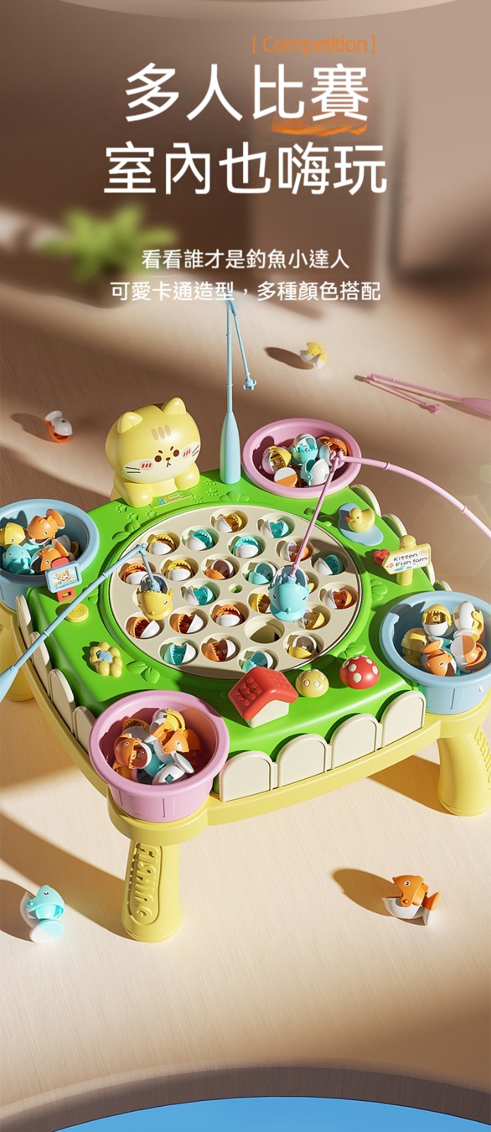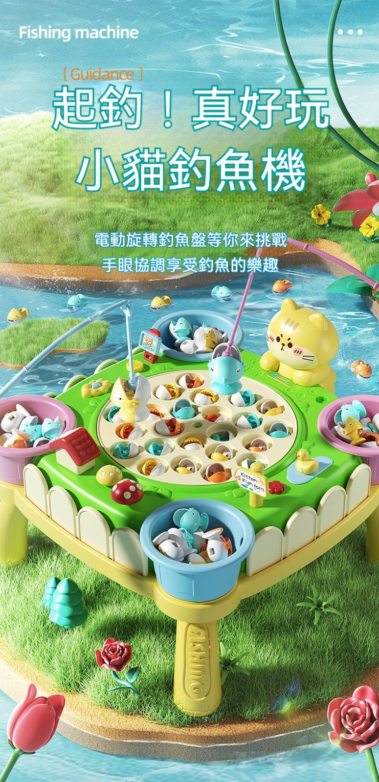 【兒童電動磁性小貓釣魚台】360°旋轉釣盤✨磁吸升級不脫落✨多人比賽・讓孩子在歡樂的垂釣中,自然鍛鍊手眼協調與專注力!✨
