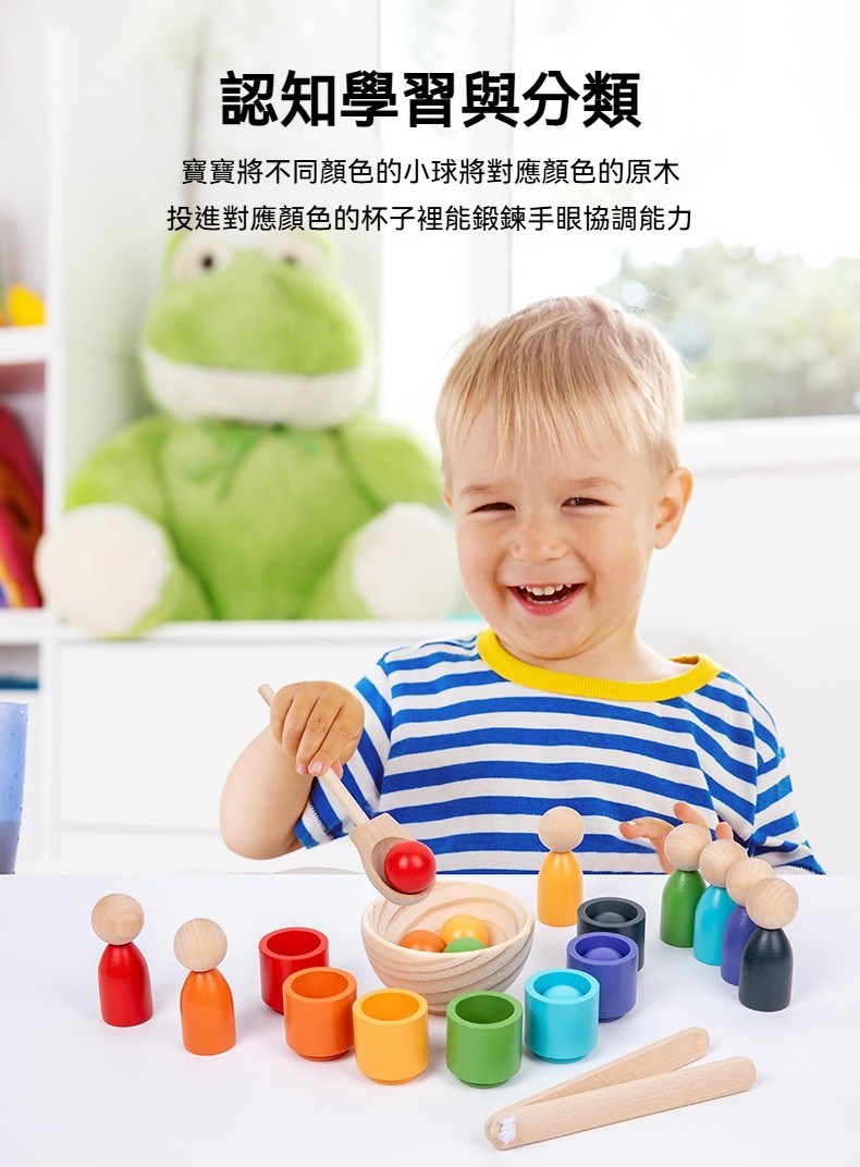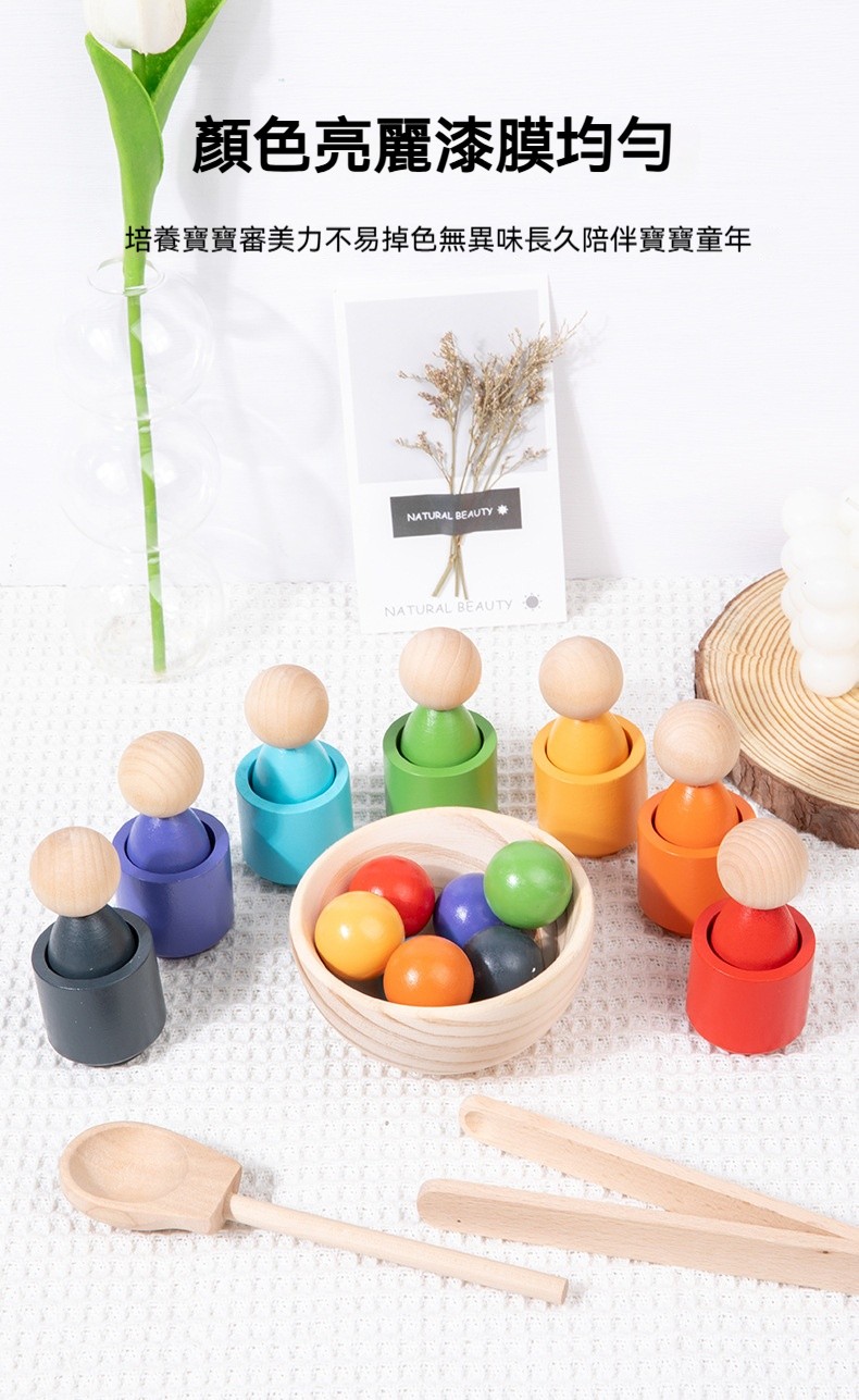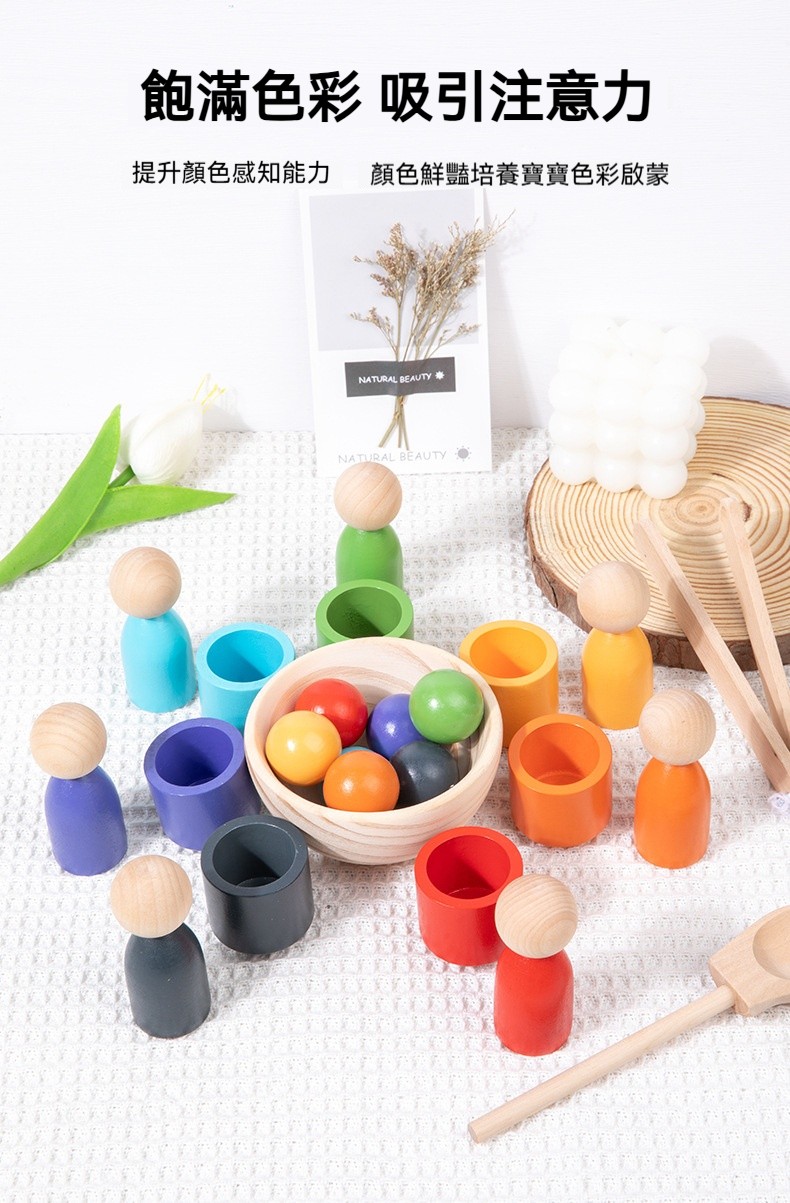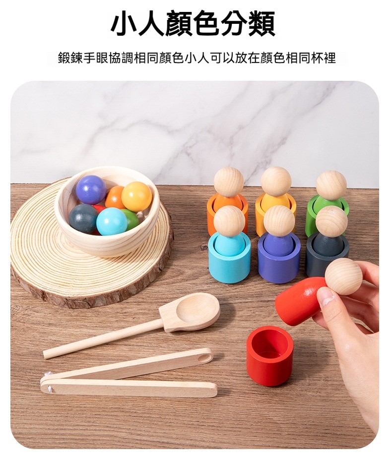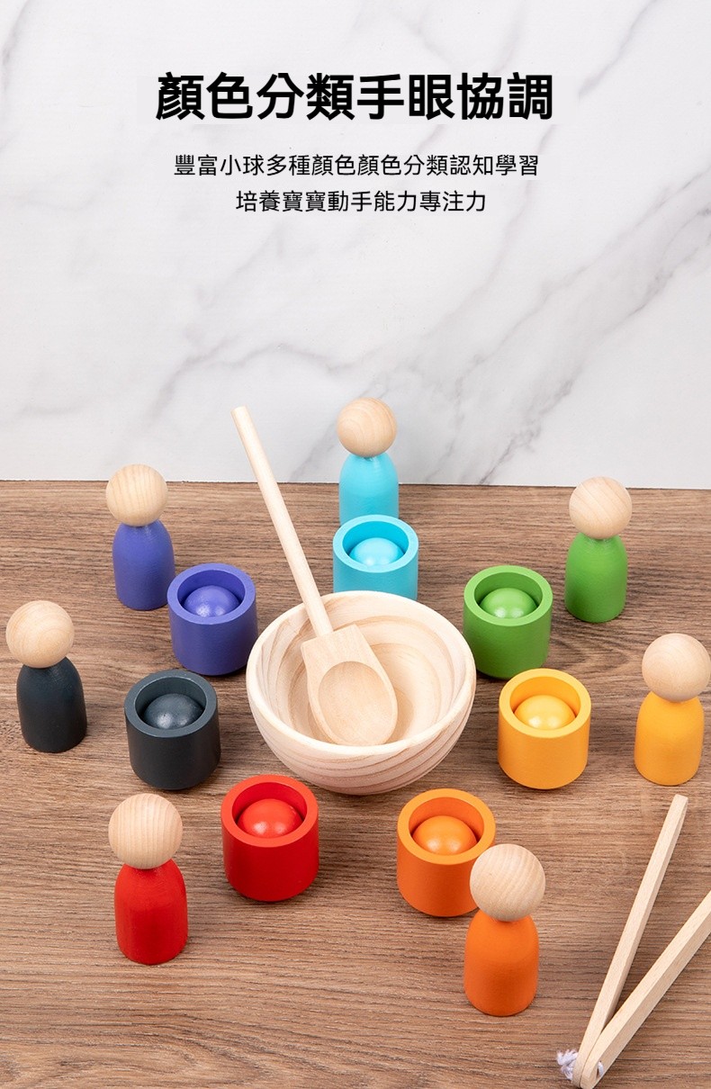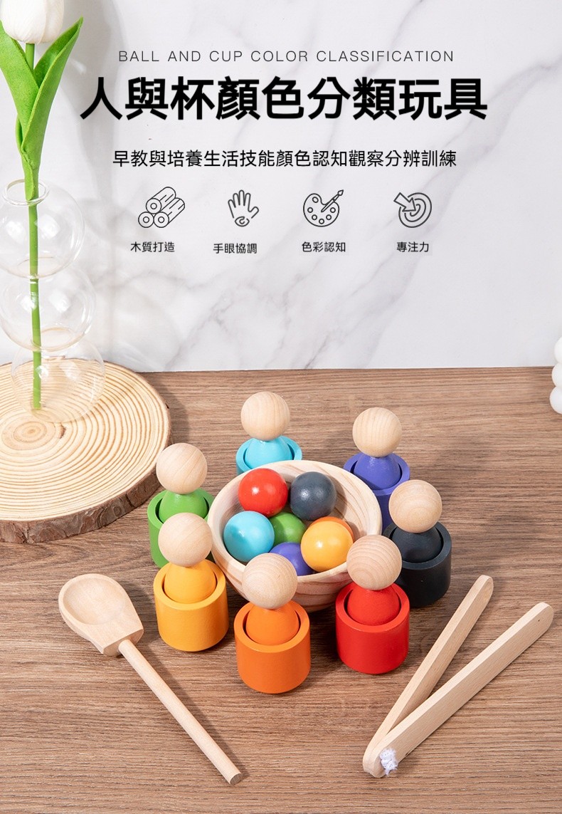 【日本蒙氏顏色球】七色球人偶杯顏色配對組✅夾球夾珠訓練組✅1-4歲幼兒精細動作早教玩具✅親子趣味認知遊戲