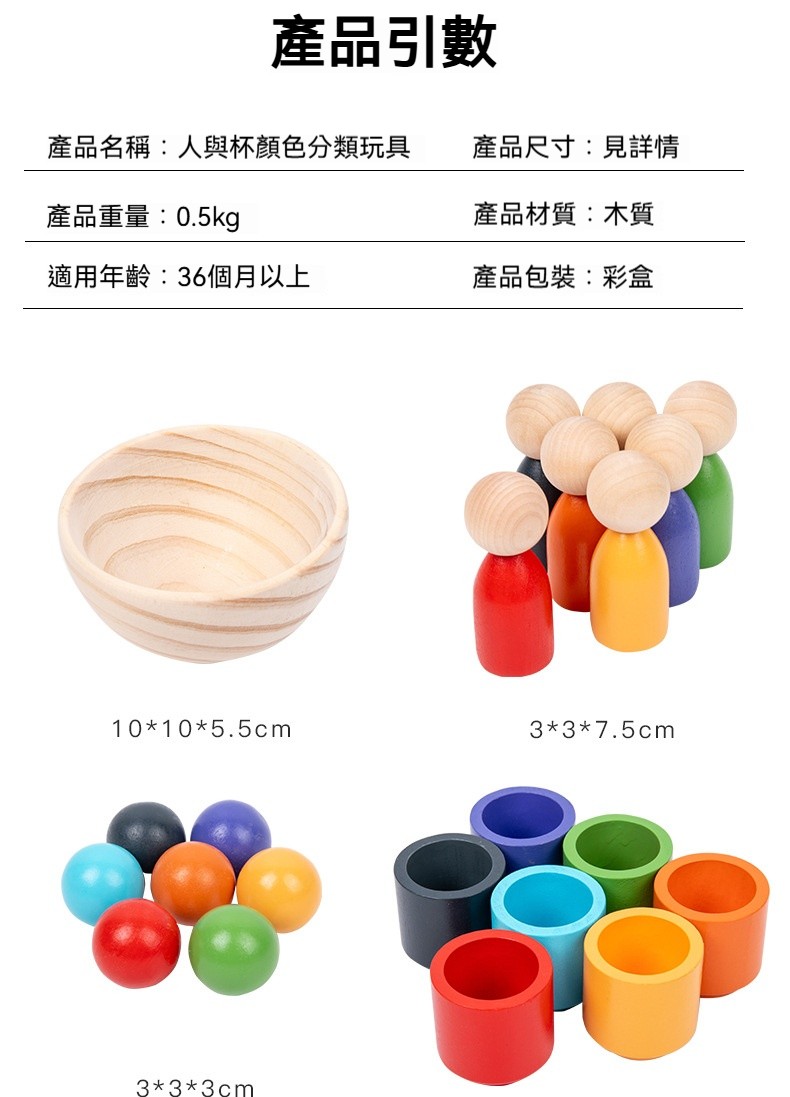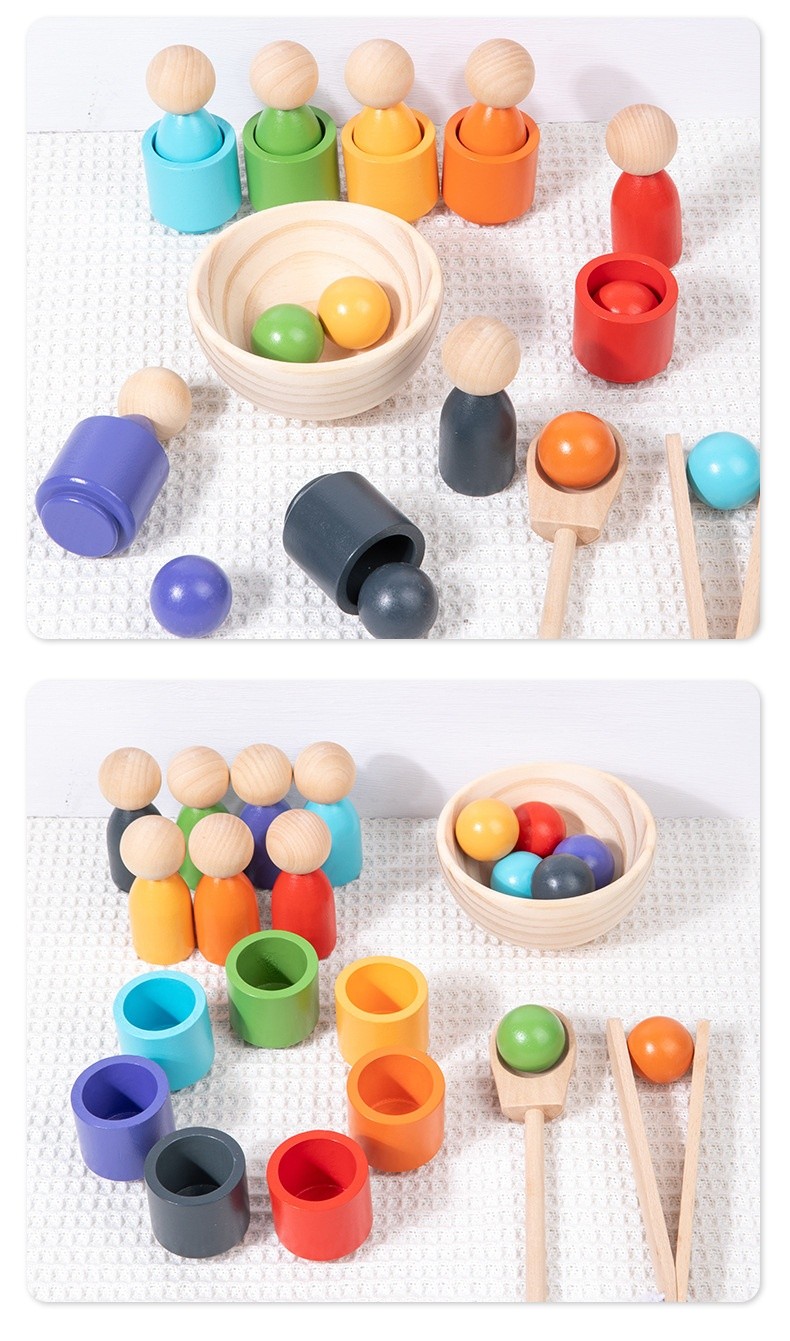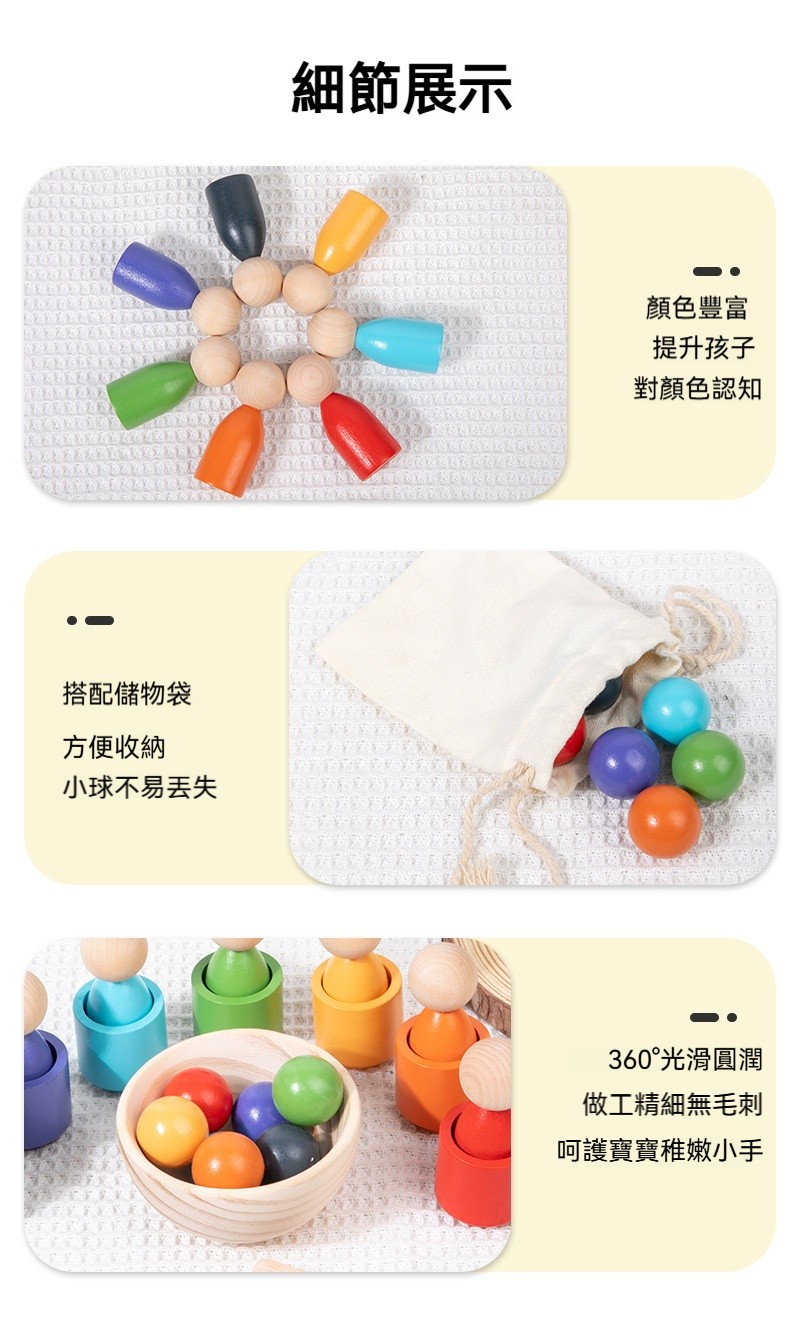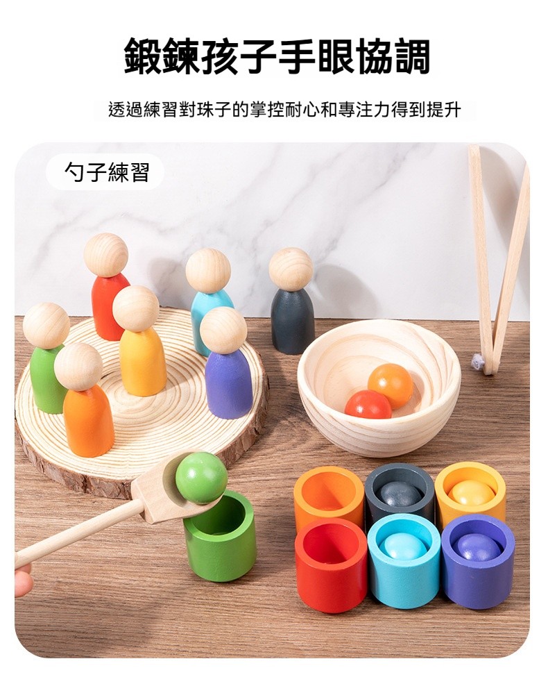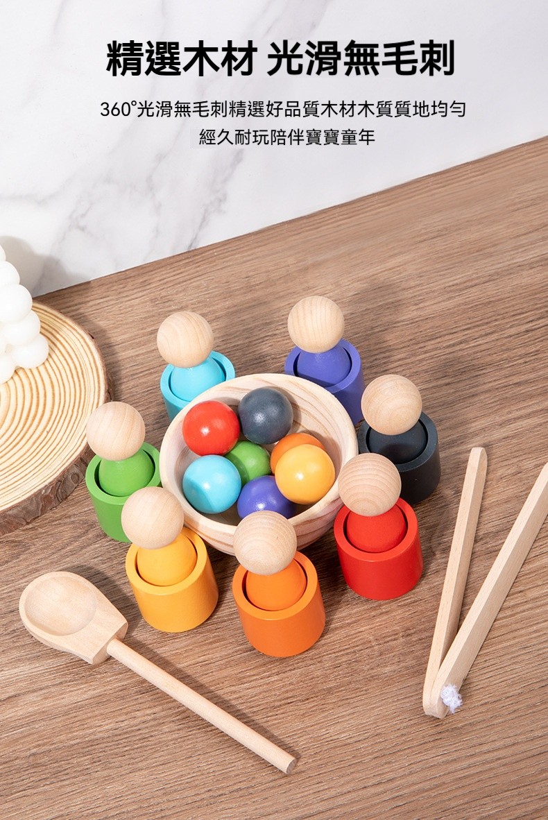 【日本蒙氏顏色球】七色球人偶杯顏色配對組✅夾球夾珠訓練組✅1-4歲幼兒精細動作早教玩具✅親子趣味認知遊戲